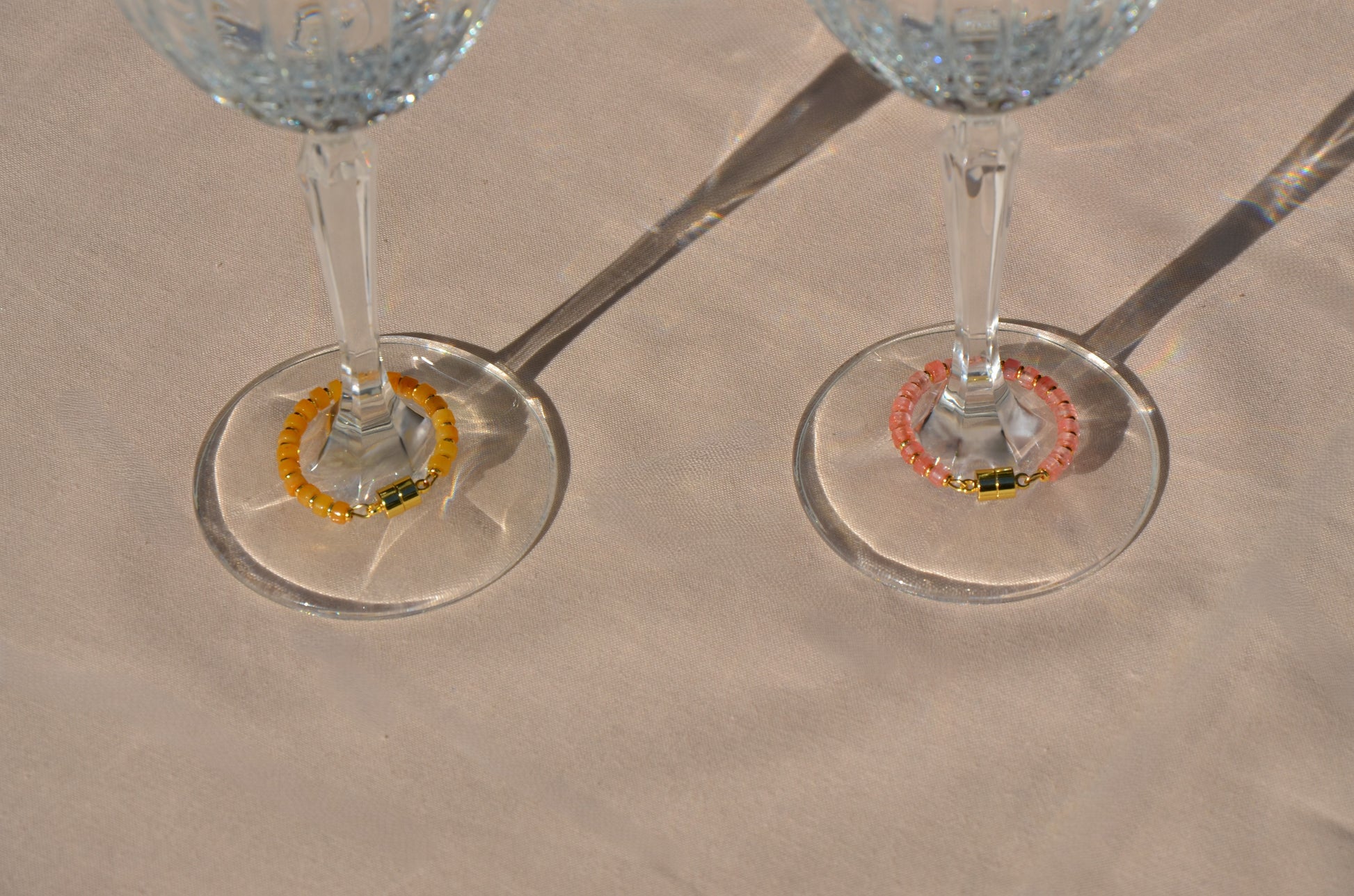 - Flat metal disc spacers between stones