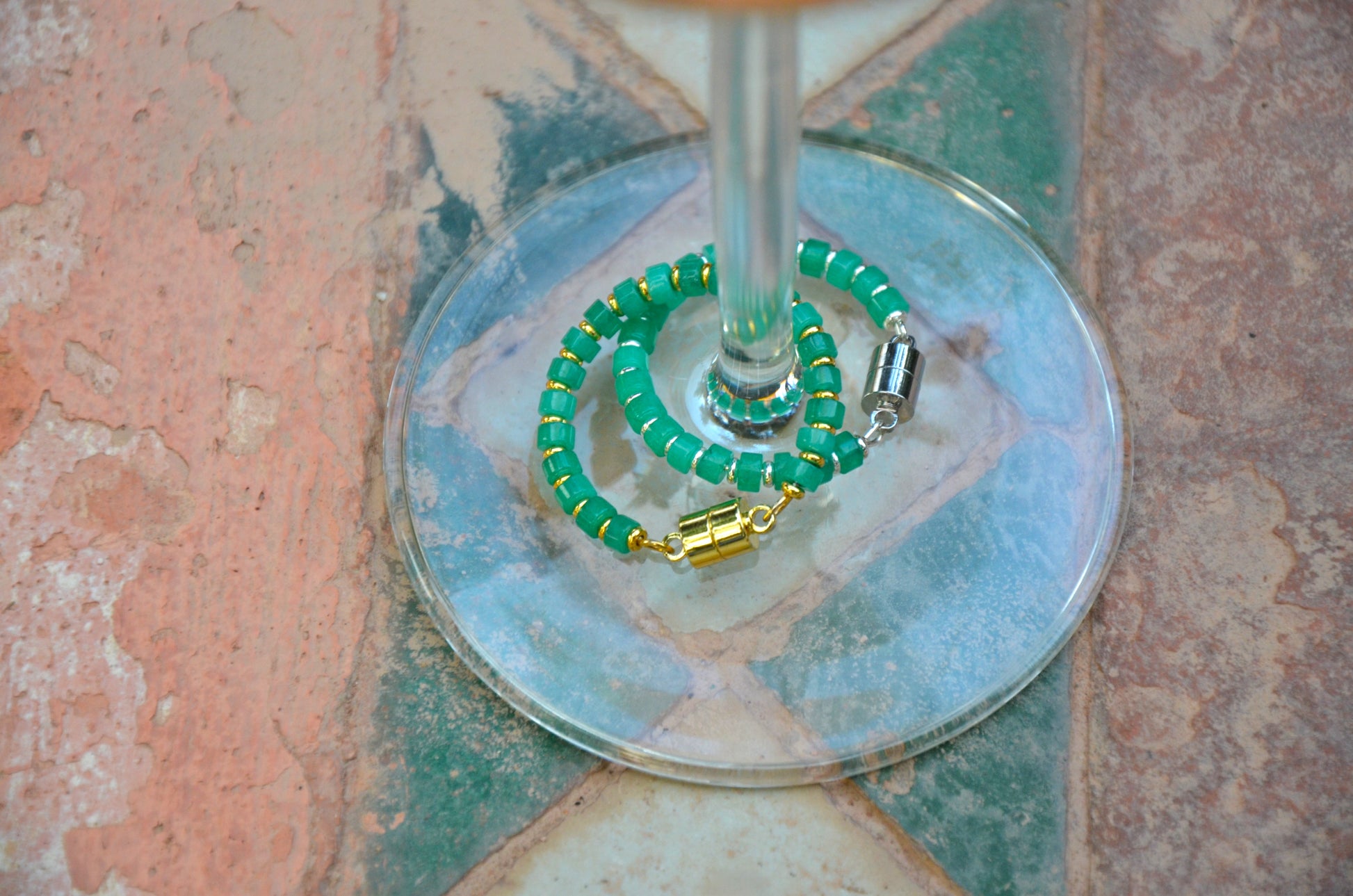 - Jade green colored stone beads