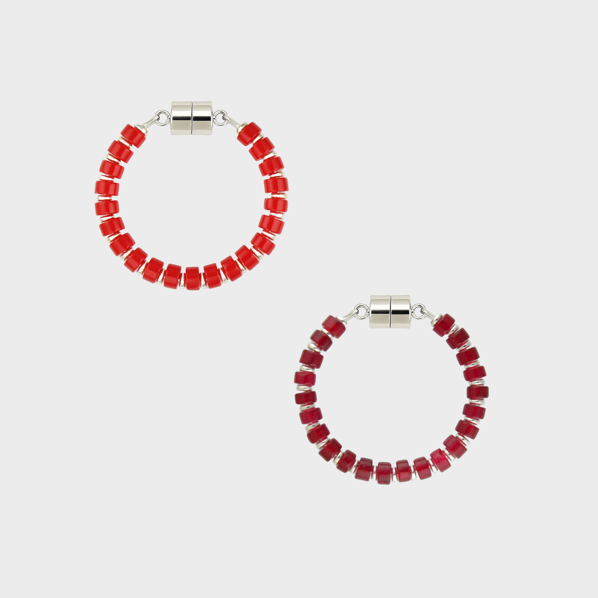 - Chromatic Curation: A set of 2 charms in complimentary Red Coral (top), and Ruby (bottom) colors, each measuring approximately 1.5" in width