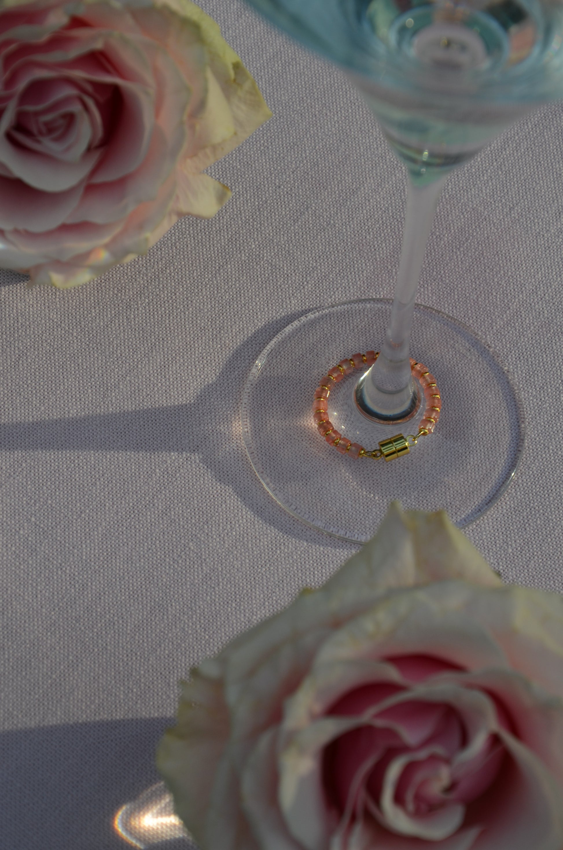 - Pale rose red/pink colored stone beads
