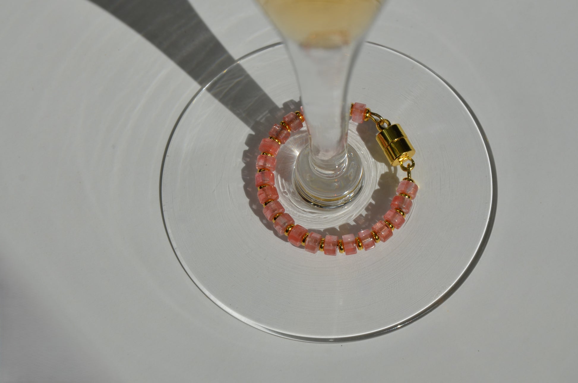 - Flat metal disc spacers between stones