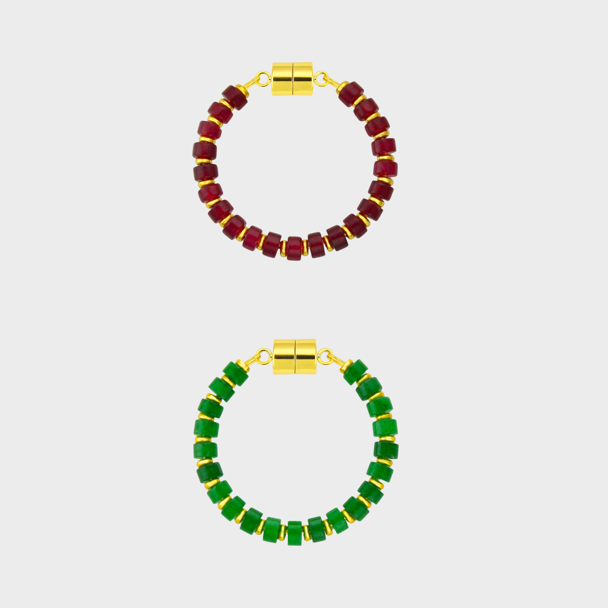 - Chromatic Curation: A set of 2 charms in Ruby (top) and Emerald (bottom) colors, each measuring approximately 1.5" in width
